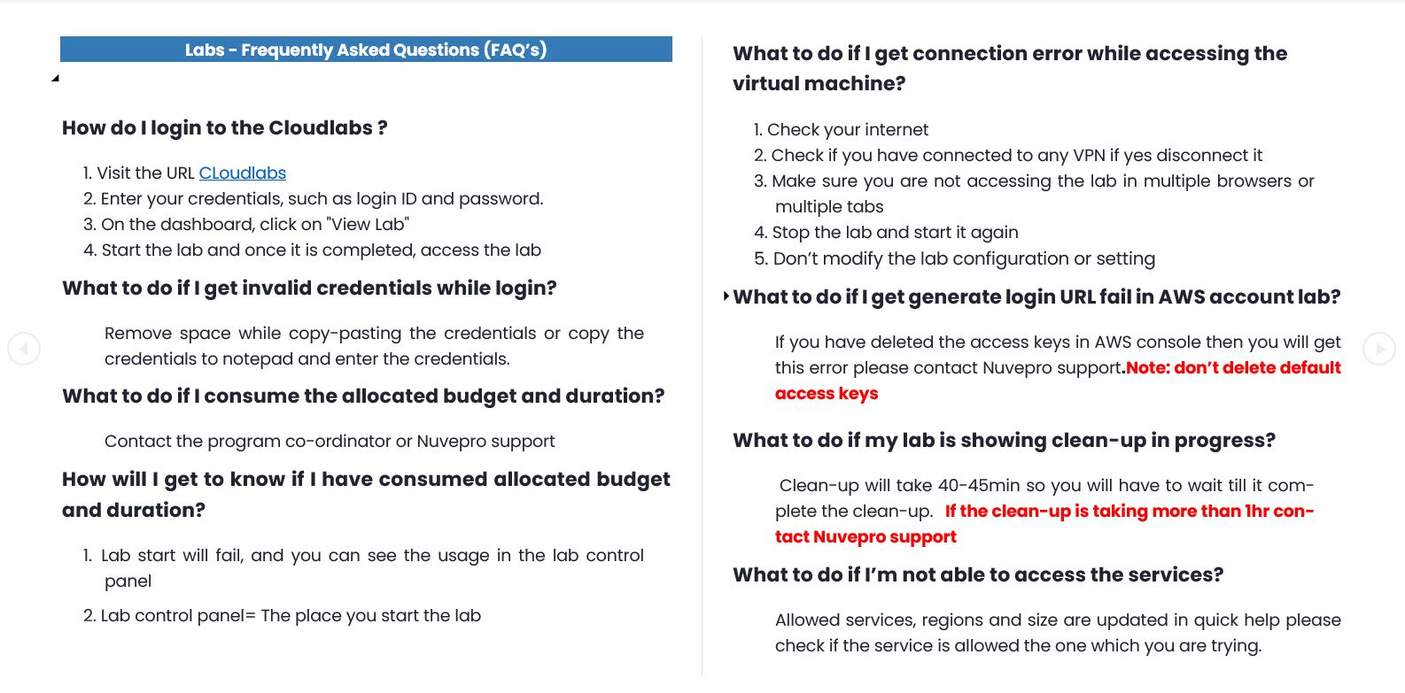 Cloud labs access FAQ